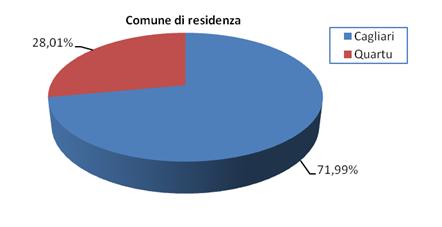 Il 71,99% (311 soggetti) degli individui partecipanti all’indagine è composto da individui residenti a Cagliari, mentre il 28,01% (121 soggetti) risiede nel territorio di Quartu S.Elena.